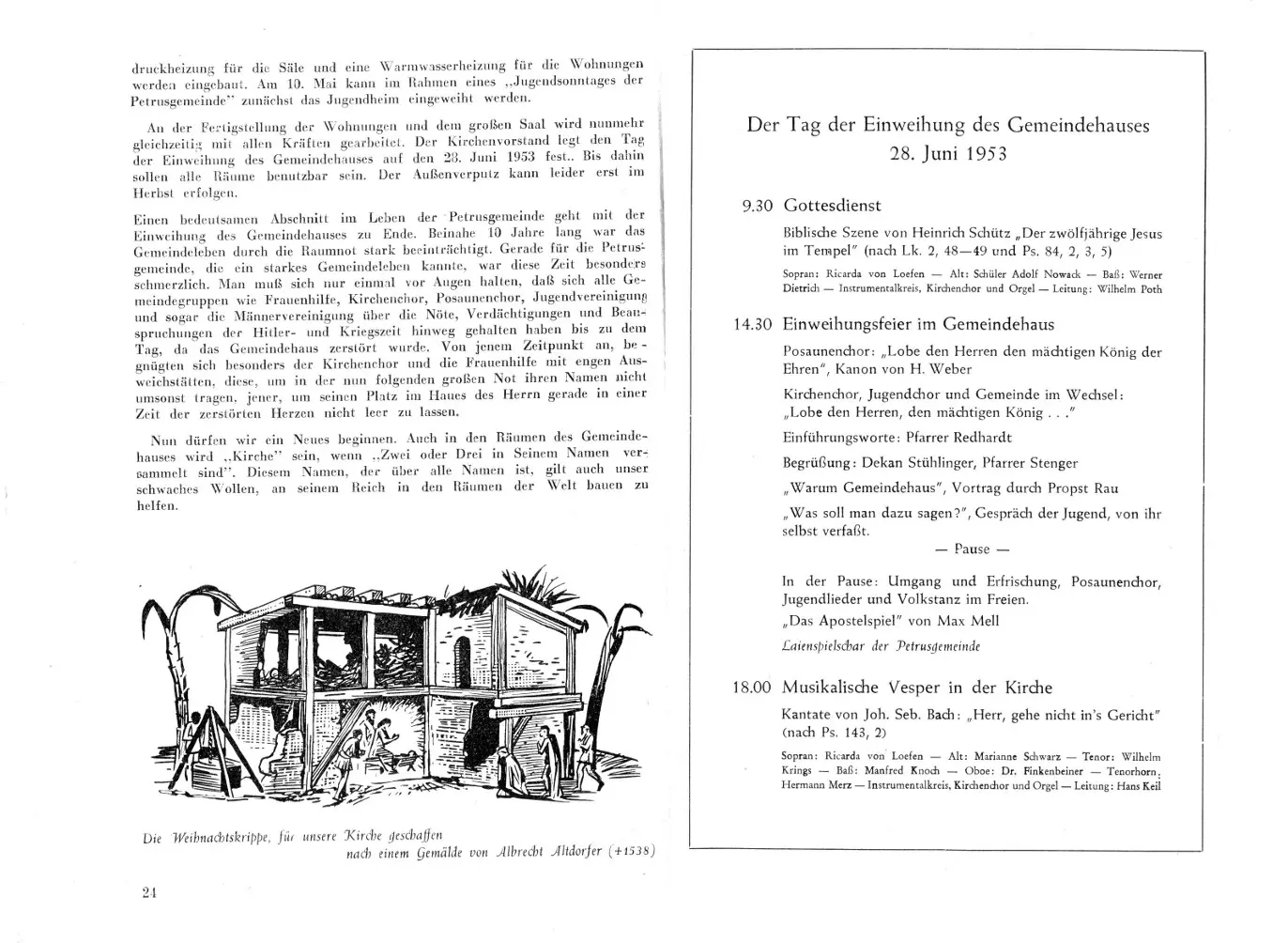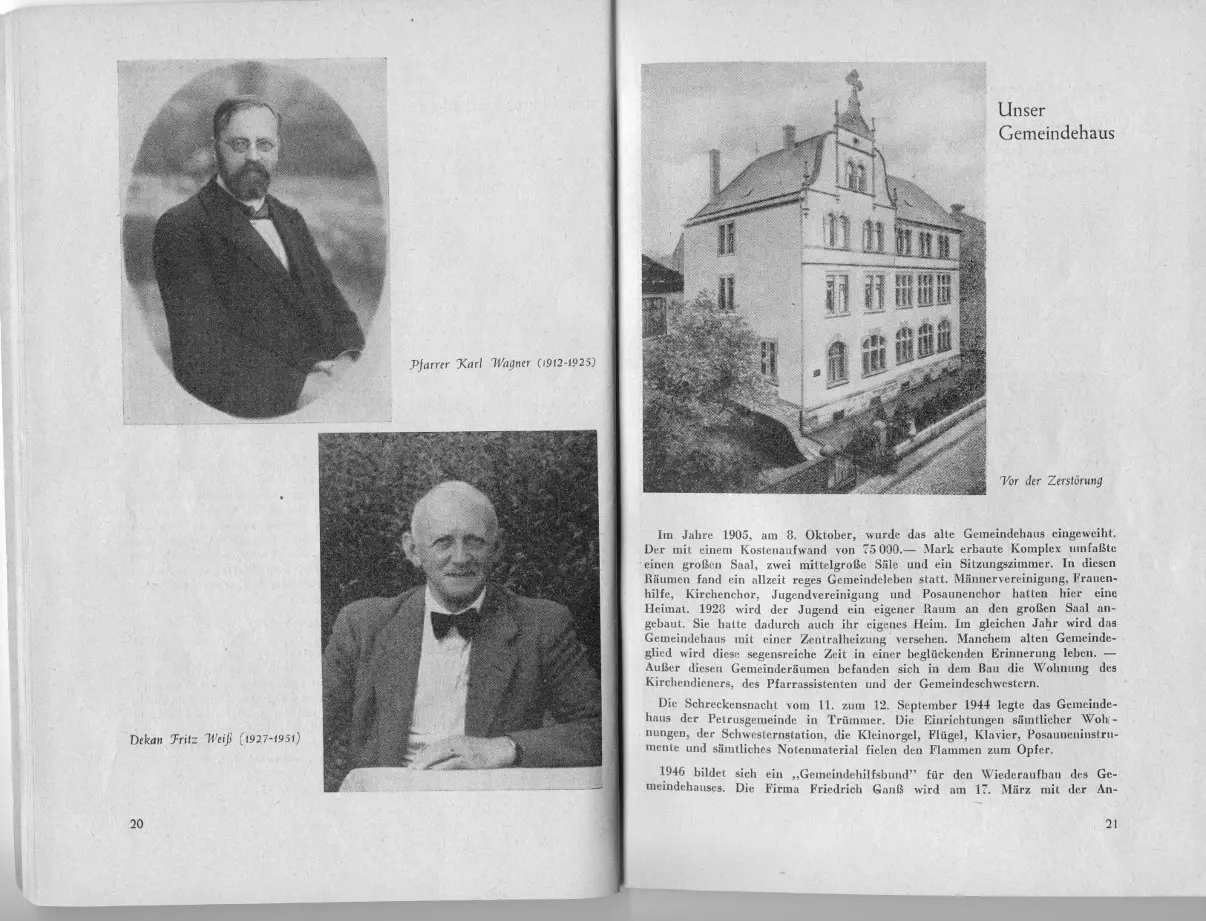 ist über 100 Jahre alt. Zur Wiedereinweihung am 28. Juni 1953, wurde sie in einer Festschrift „Wegweiser der Petrusgemeinde Darmstadt“ beschrieben, herausgegeben im Auftrag des damaligen Kirchenvorstandes der Petrusgemeinde Darmstadt von Pfarrer Willi Redhardt. (Quelle: Helmut Laudert)