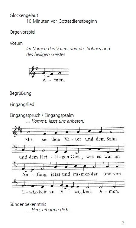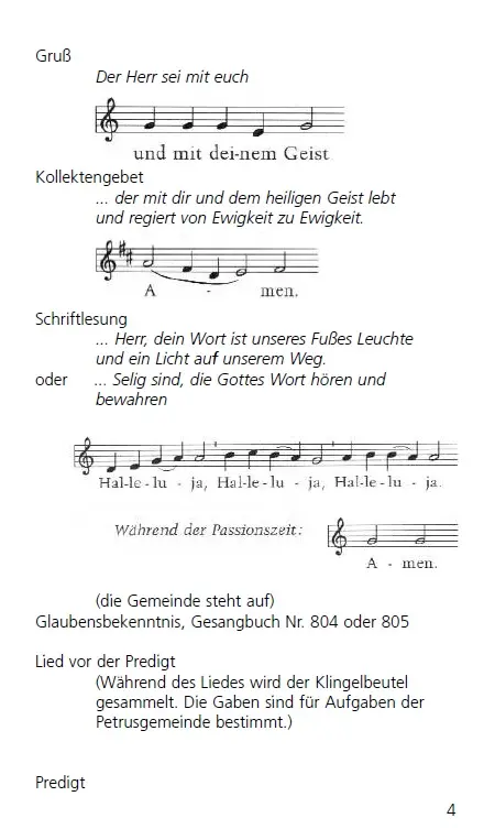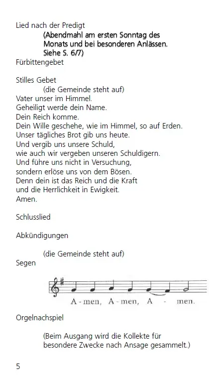 In unserer Kirche ist die folgende Liturgie im Sonntagsgottesdienst üblich:
