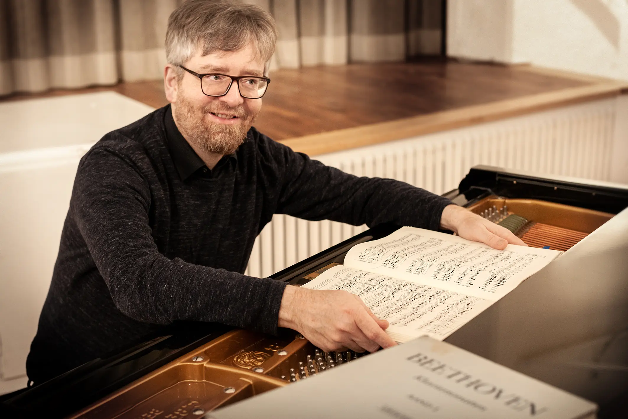 Joachim Enders am Bechstein-Flügel im Gemeindehaus der Petrusgemeinde, 20. Dezember 2019
